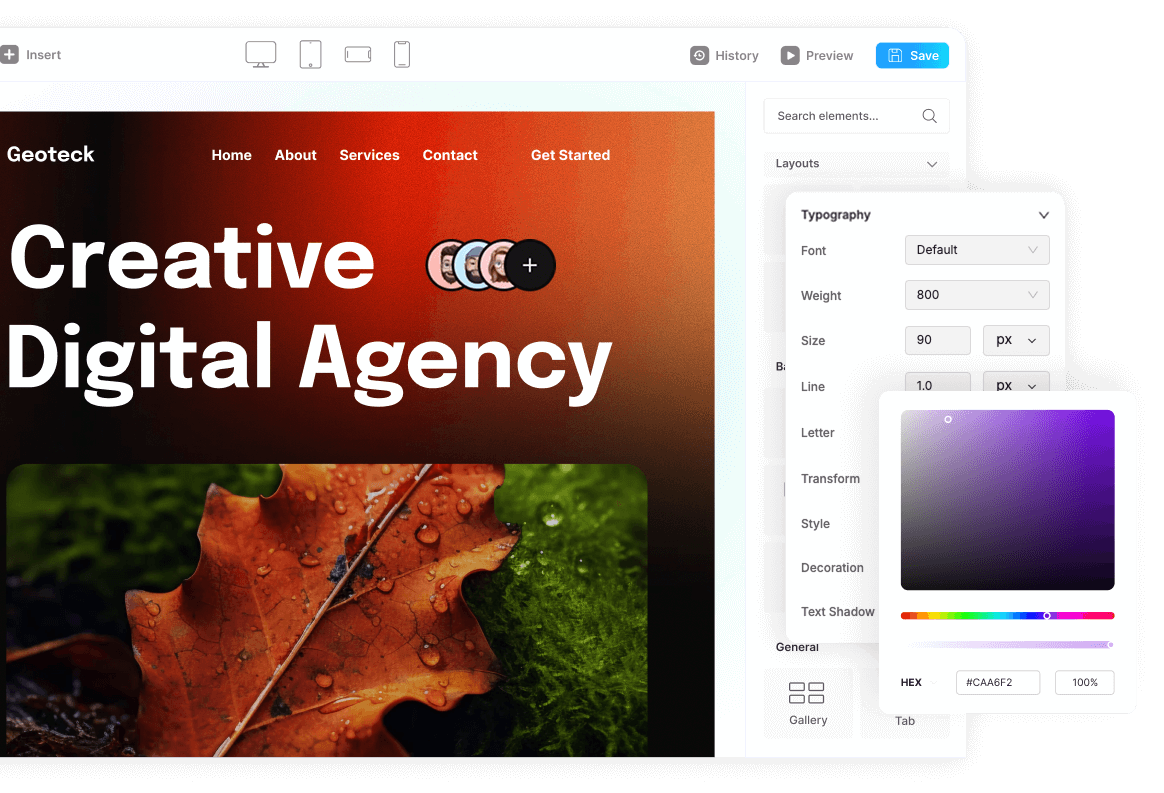 Drag-and-drop interface, responsive design, and advanced customization options.